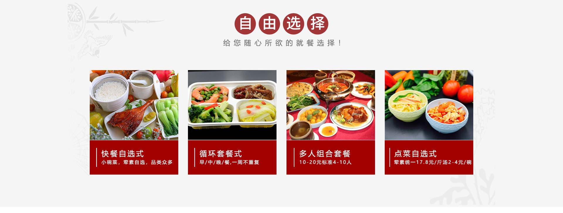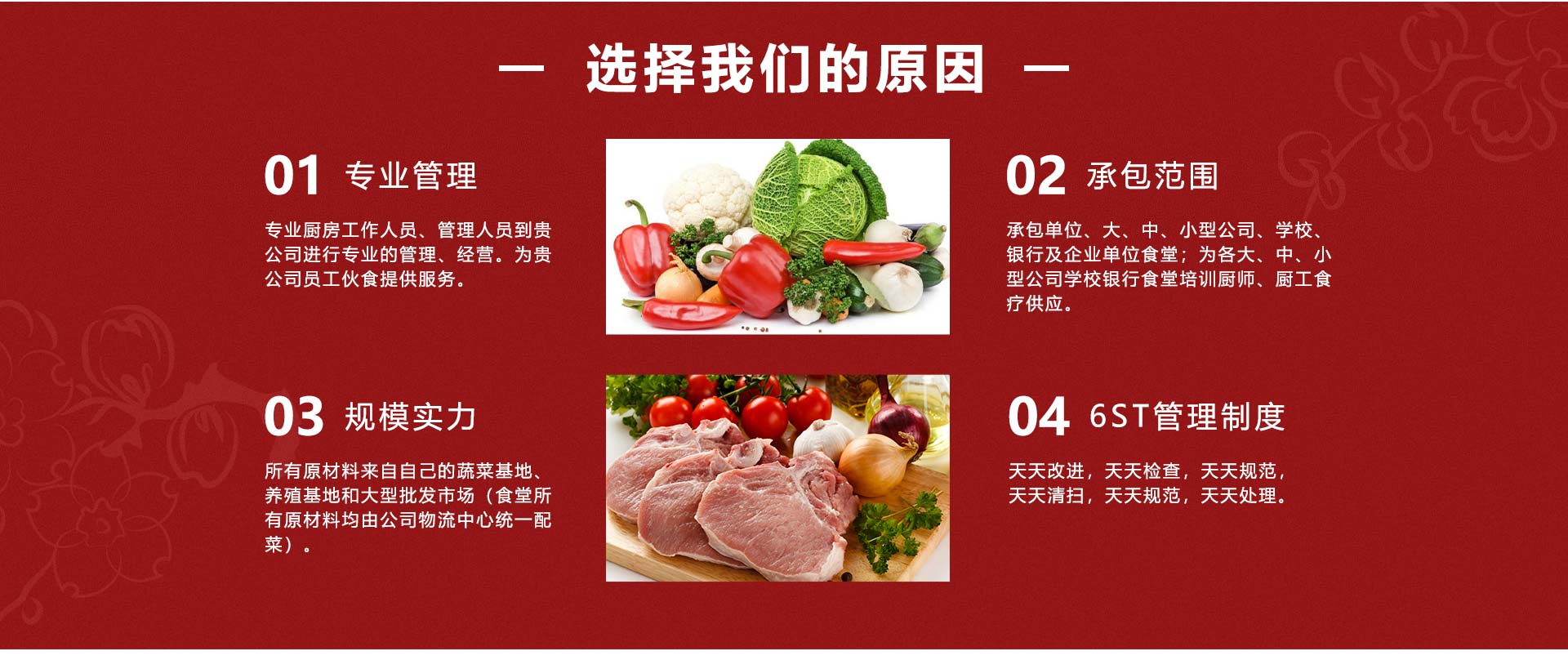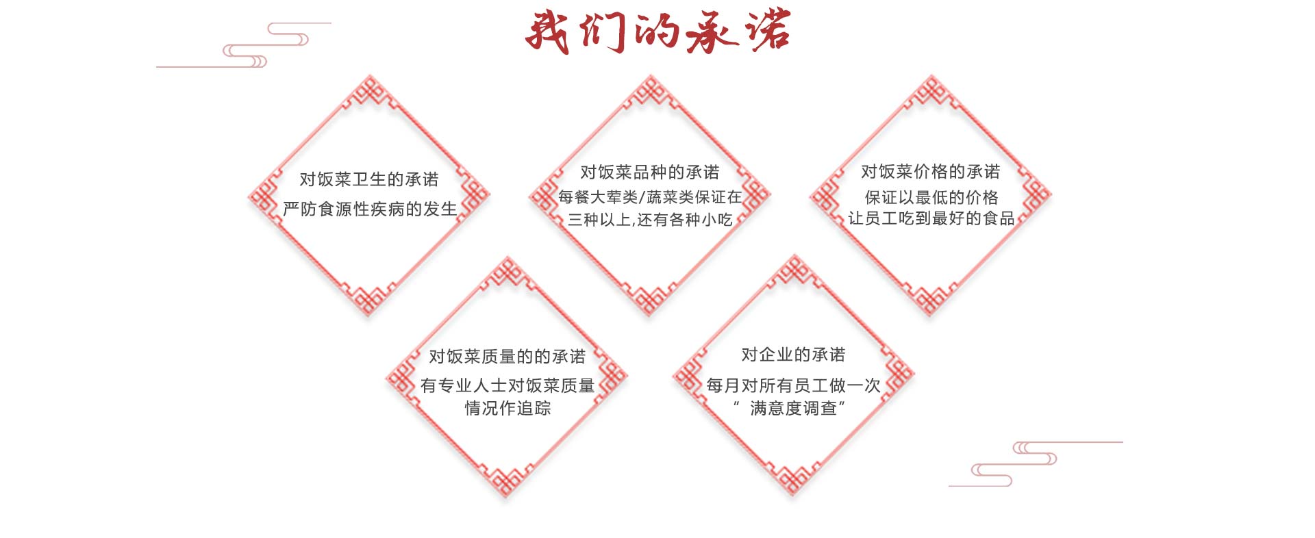蕪湖名益餐飲管理有限公司是一家從事企事業(yè)單位、醫(yī)院、學(xué)校、工廠食堂伙食承包、蔬菜糧油配送、服務(wù)托管、廚房設(shè)計(jì)投資工程為一體的綜合服務(wù)公司,具有良好的經(jīng)濟(jì)實(shí)力及良好的服務(wù)信譽(yù)。公司于2005年成立與上海,前身為上海紅偉餐飲管理有限公司,2009年進(jìn)軍蕪湖后更名為蕪湖名益餐飲管理有限公司。本公司廣攬烹飪和后勤管理人才,擁有一批訓(xùn)練有素、管理經(jīng)歷豐富的隊(duì)伍及經(jīng)驗(yàn)豐富的廚師,為客戶提供高素質(zhì)的餐飲服務(wù);統(tǒng)一管理、連鎖經(jīng)營(yíng),為承包大中型企業(yè)飯?zhí)锰峁┝霜?dú)到的優(yōu)勢(shì),公司成立以來(lái),秉著“做事先做人”的處世之道以“誠(chéng)信服務(wù)為本”的經(jīng)營(yíng)理念,設(shè)身處地為廣大客戶服務(wù),我們把每一位顧客當(dāng)做朋友,我們時(shí)刻關(guān)心他們,我們恪守CARE的含義(COURTESY禮貌ATTENTIVEVESS關(guān)注RESPECT尊重EFFECTIVENESS效率)同時(shí)在全體員工的辛勤努力下,現(xiàn)已成為一家統(tǒng)一管理、連鎖承包、頗具規(guī)模的餐飲服務(wù)公司。我們歡迎您的光臨,并為我們留下寶貴的意見(jiàn)。 [查看更多]